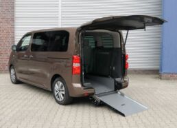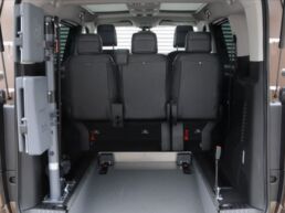 The Vauxhall e Vivaro Combi has a range of around 150 miles and capability to carry 5 people (including driver) and a wheelchair with occupant or 7 people (including driver) without a wheelchair.